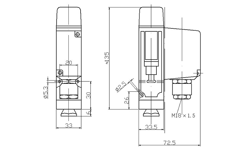 安裝位置壓力接口垂直向下(允許傾斜15°)